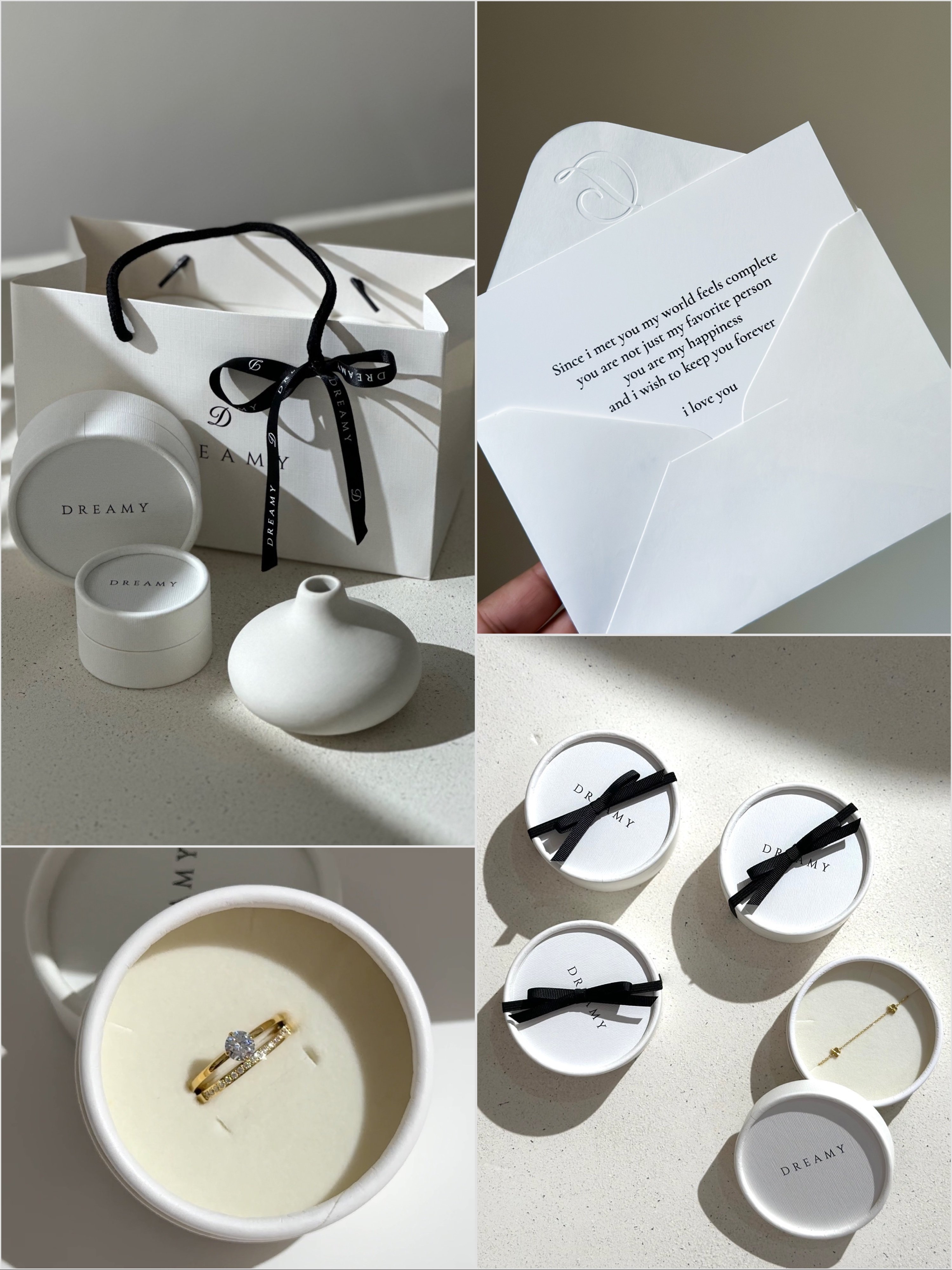 ( قلادات ، اقراط ، أساور ، خواتم ) جميعها ستصلكم في العلب الخاصة بها بدون طلب مسبق او رسوم اضافية مع كيس اهداء واحد في الطلب بحجم صغير مناسب للمنتج وللاهداء ، ولا يتم ارفاق كيس اهداء لكل قطعة
